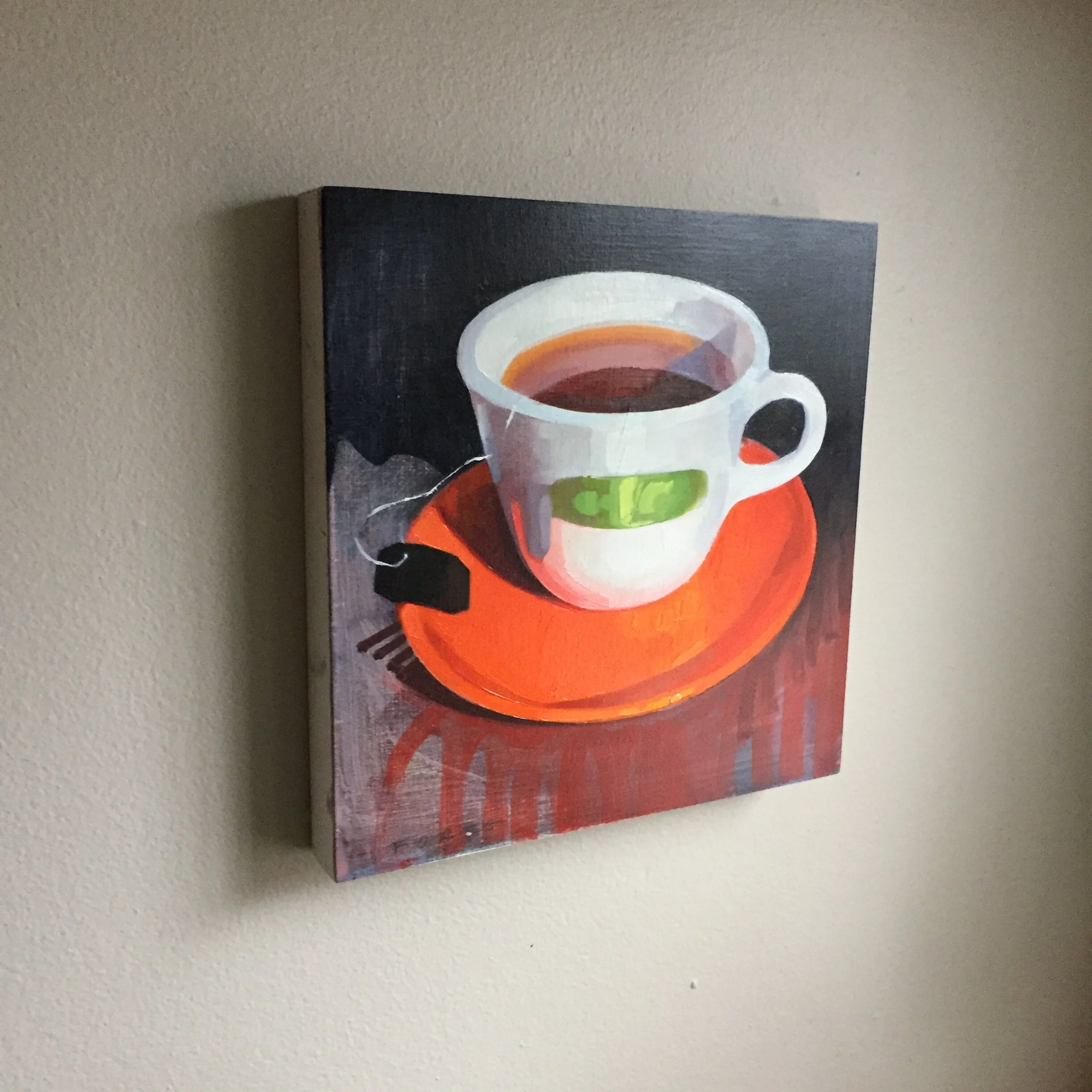A study I did contemplating a series of mug paintings in the manner of my painting “The Kids” which did not come to fruition. This is one of my favorite 70’s pyrex mugs with black tea and direct sunlight.