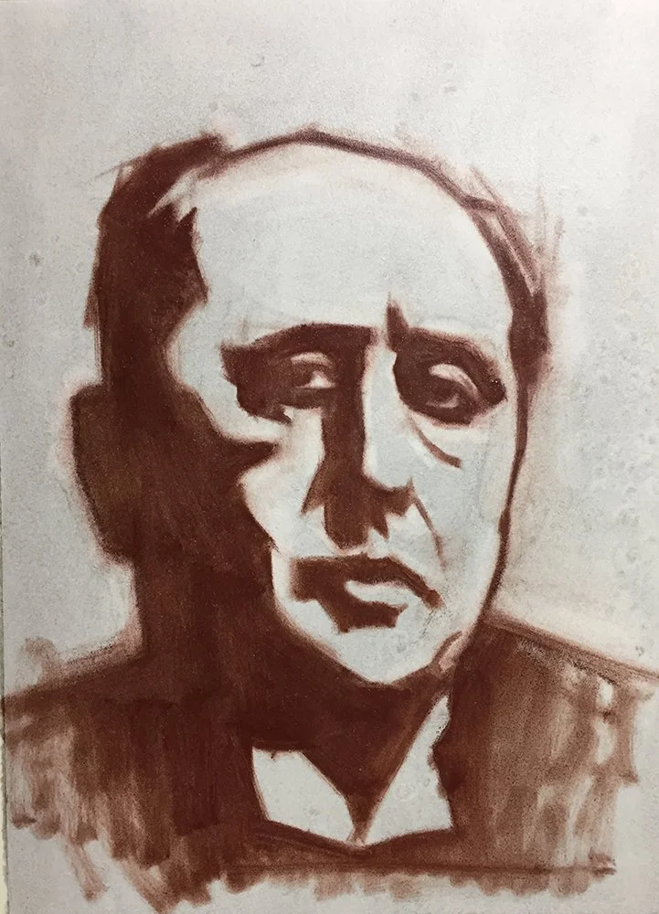 I've chosen this portrait crop because of its strong and simplified organization of values, created by the single light source - which will make learning this method easier.