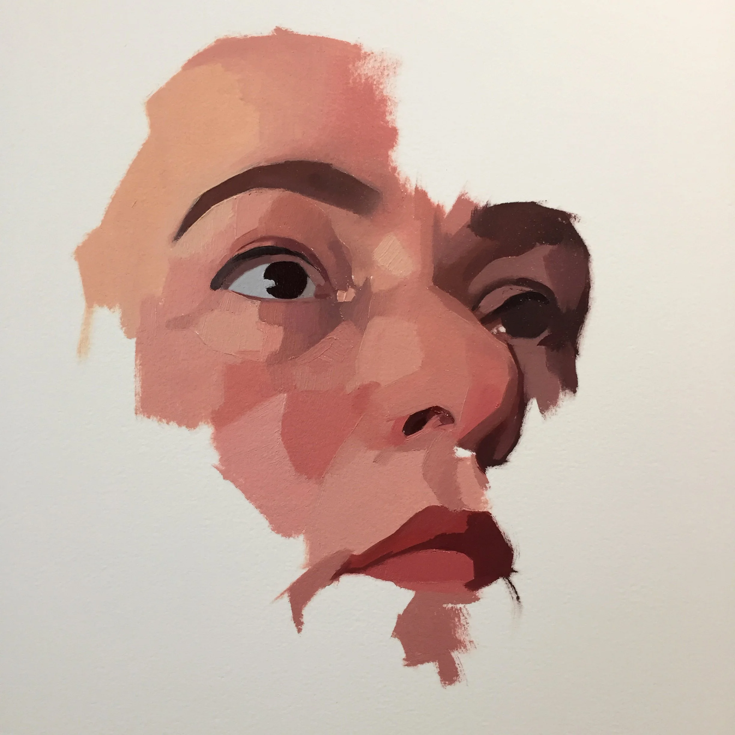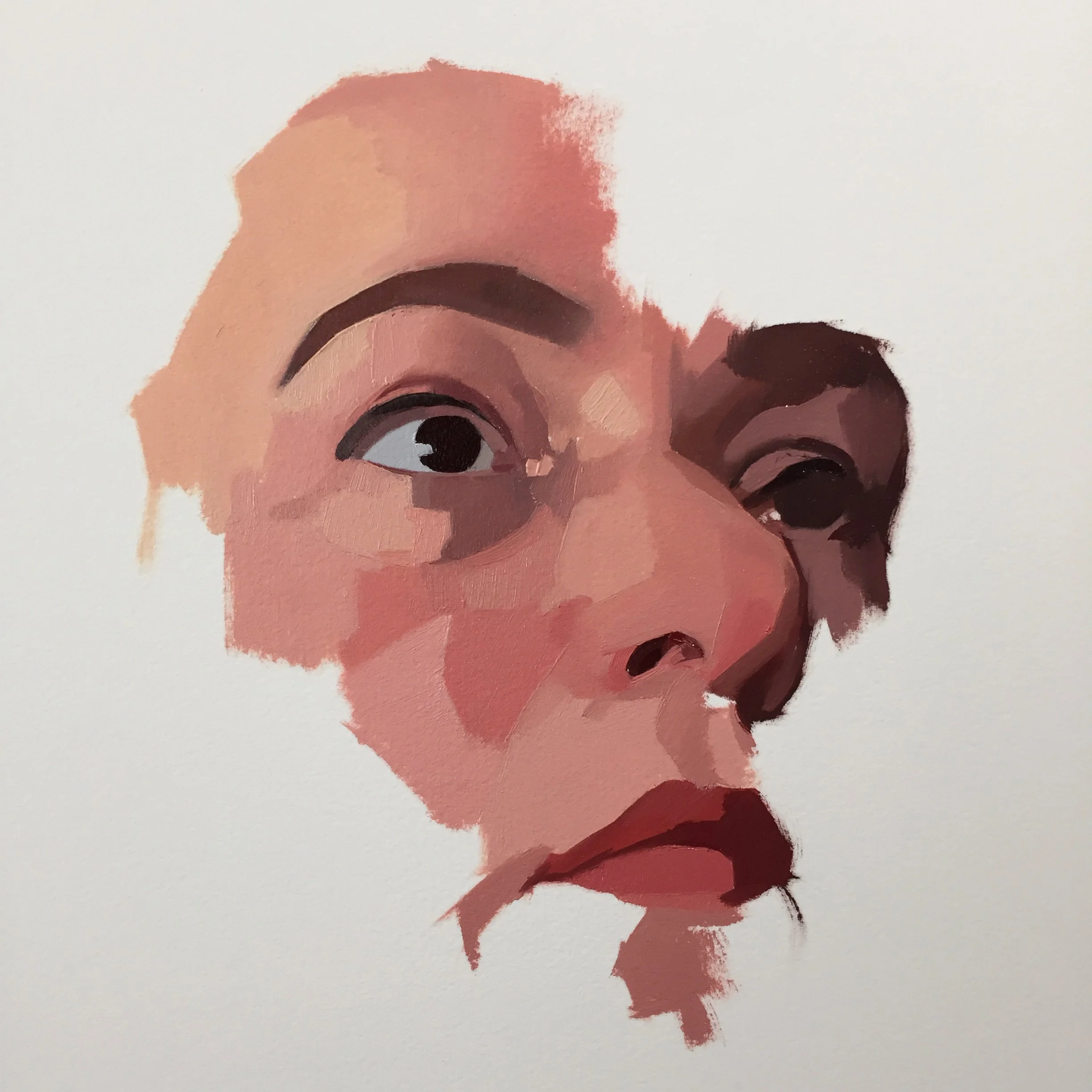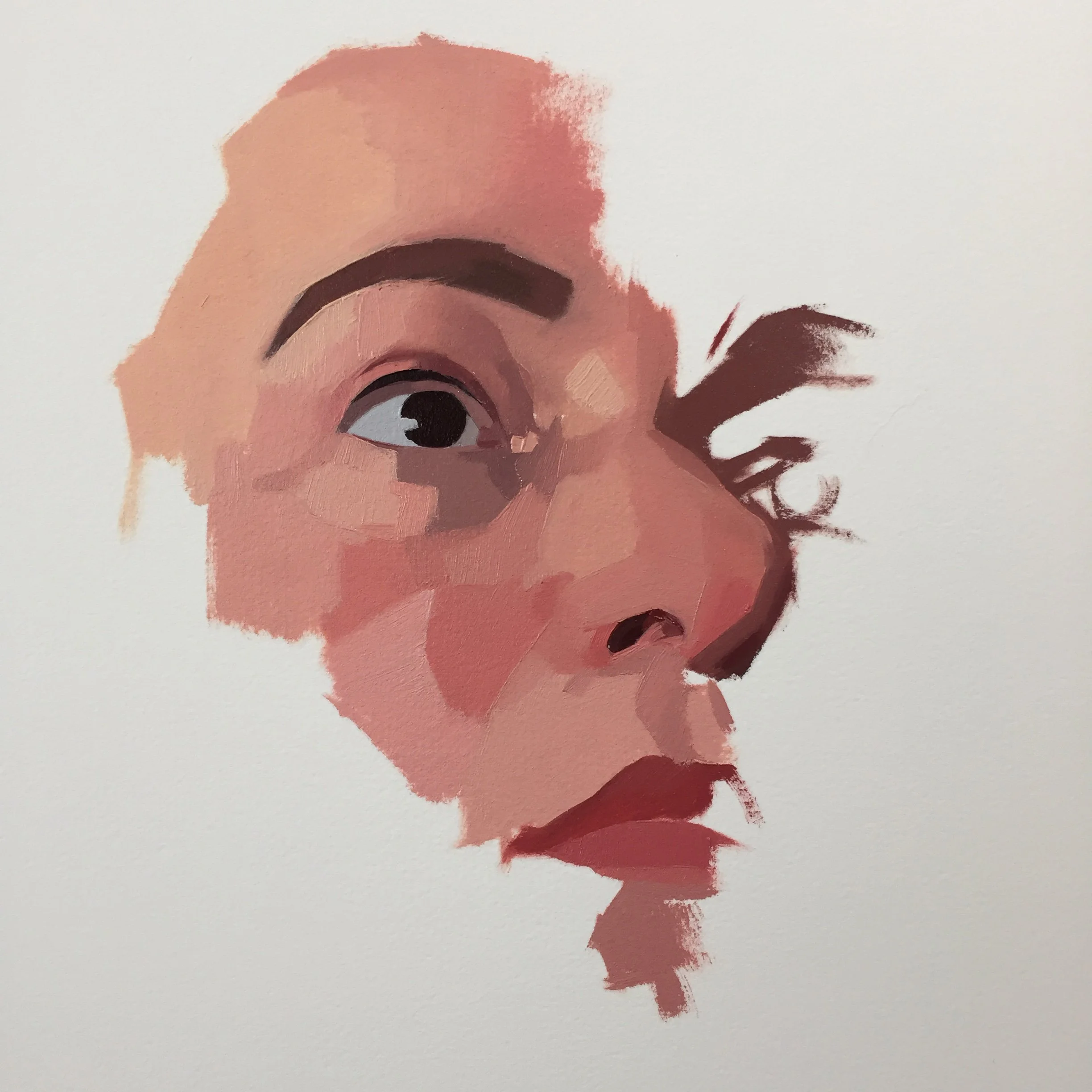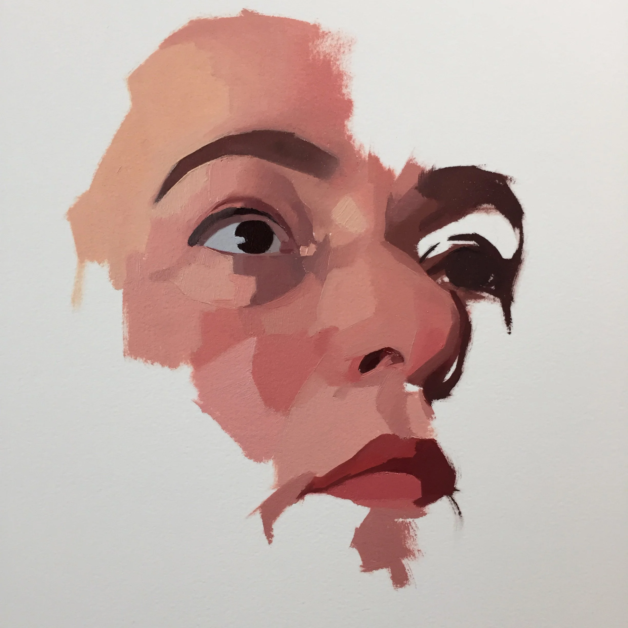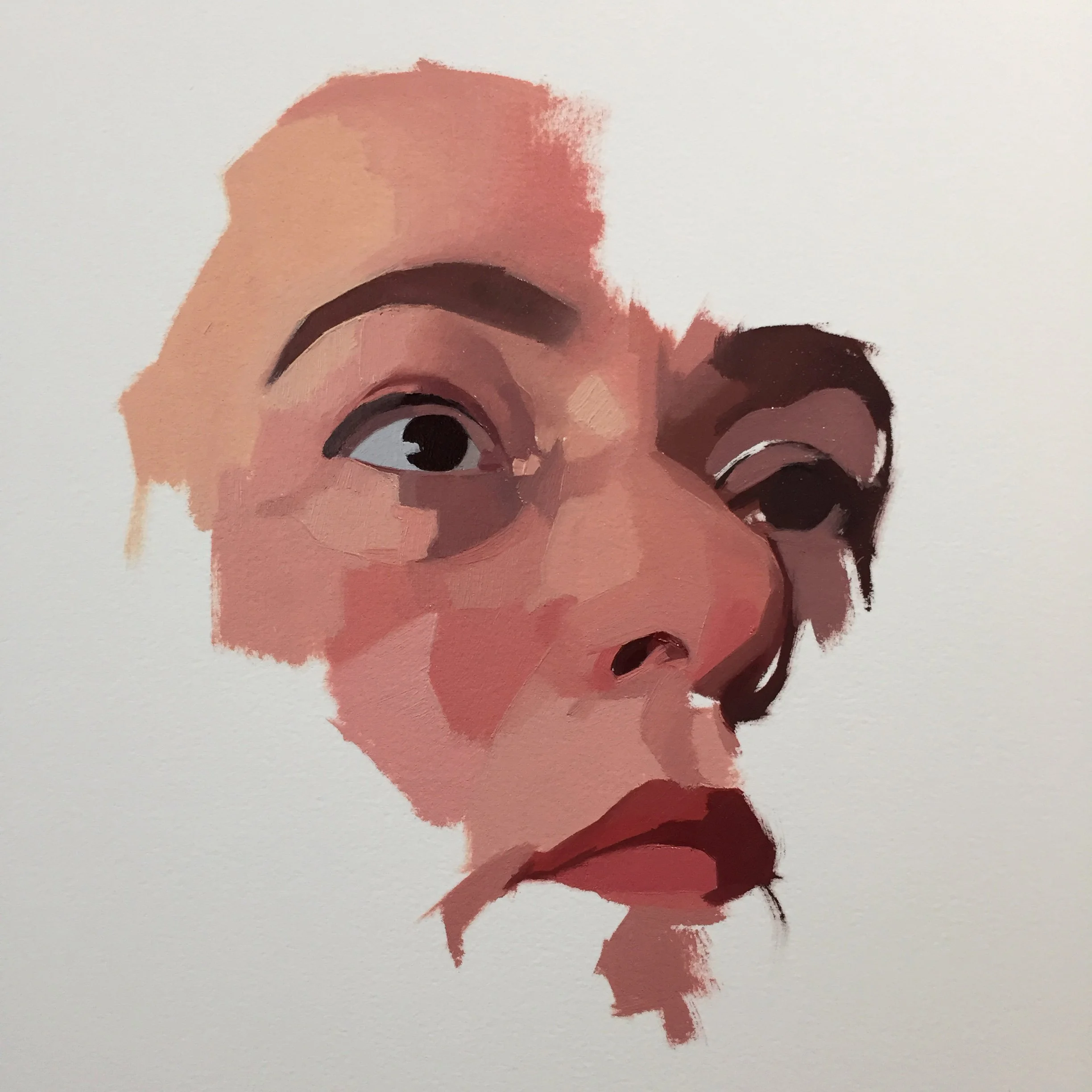 Choose the very next shape that is touching the first shape you made (eyelid or white of the eye… for example) and try to mix the right color and value for that second shape - then place that paint in the correct spot on the canvas in the correct shape for what you intended, and right next to your first shape. It will be easier if you place one shape next to the last rather than jump all around the canvas (that would be an extreme level of difficulty!).